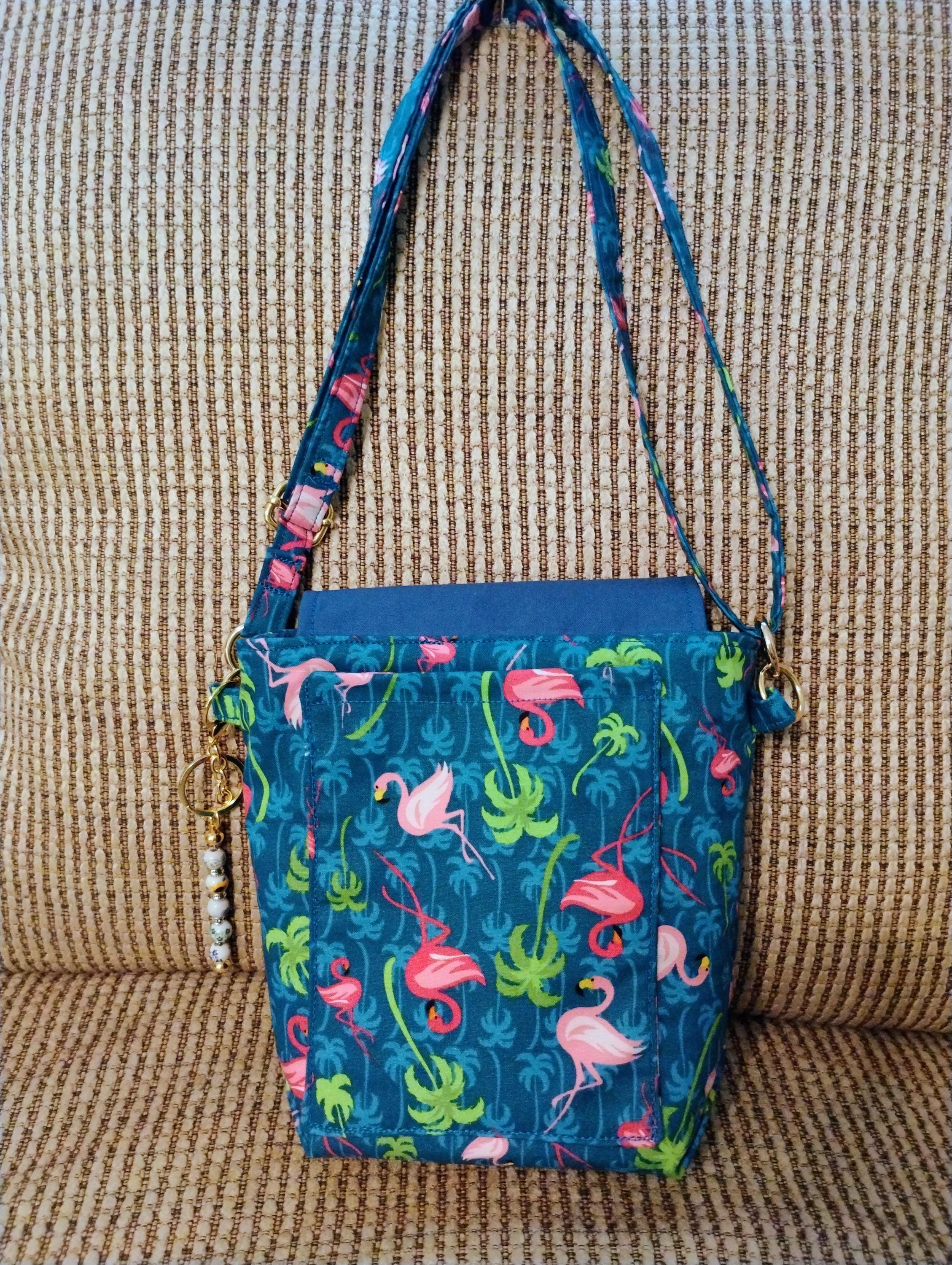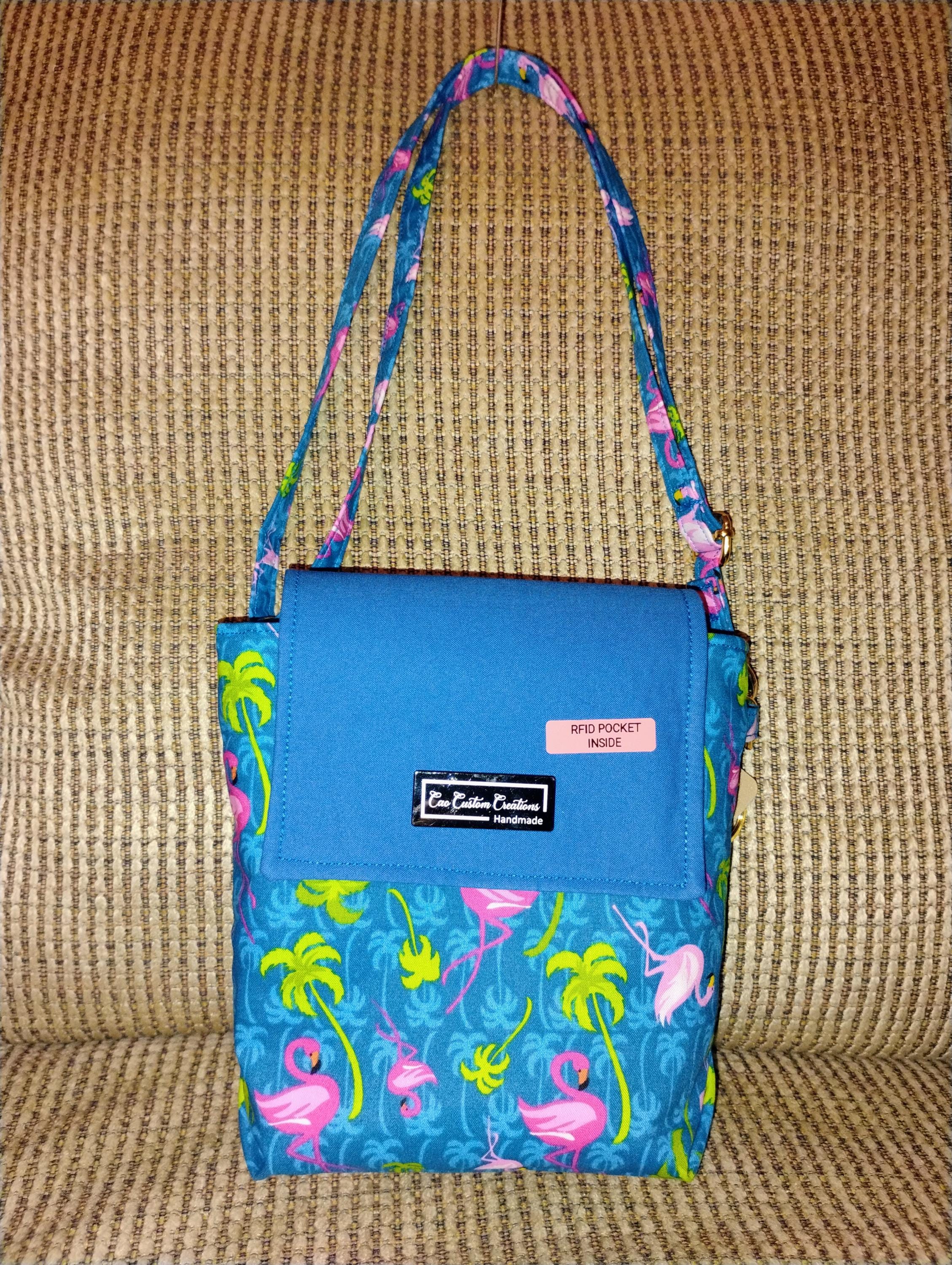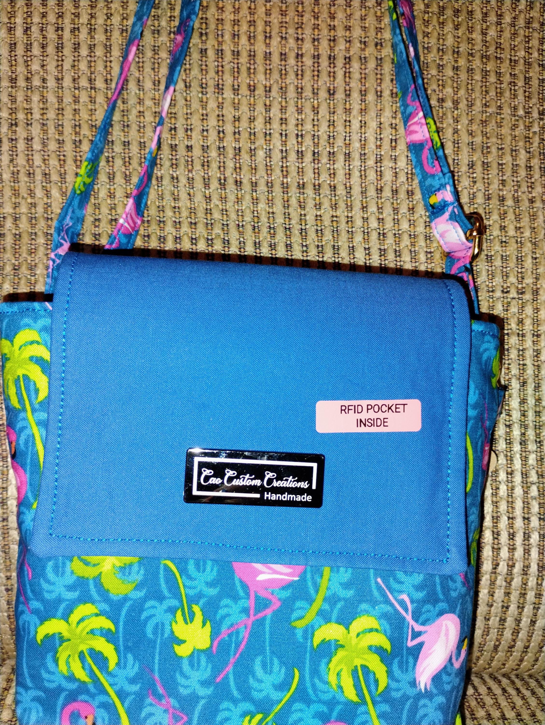 This midsized bag is the ideal choice and a favorite for many. It can be worn as either a crossbody or a shoulder bag. The exterior has a convenient cellphone pocket for easy access, while the interior features an RFID-protected zip pocket for credit cards, offering security against electronic theft. Lightweight, fun, and unique, this purse secures with a magnetic snap. Measuring 9 x 7 x 3 inches and weighing only 6 ounces, it’s both stylish and practical. It also includes a striking key chain for added flair.